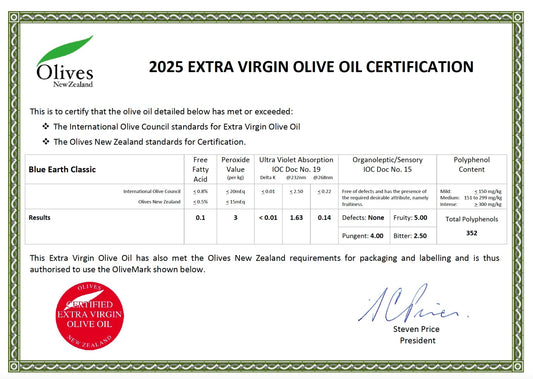 Blue Earth Estate Premium Extra Virgin Olive Oil - Classic Blend - New Season