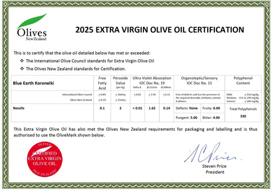 Blue Earth Estate Premium Extra Virgin Olive Oil - Koroneiki - New Season