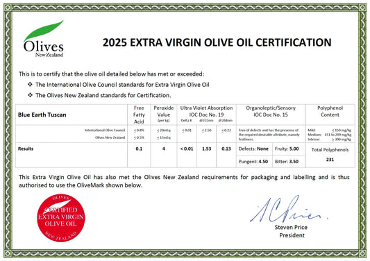 Blue Earth Estate Premium Extra Virgin Olive Oil - Tuscan Blend - New Season