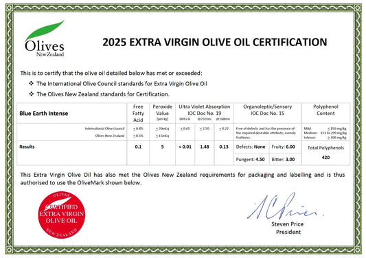 Blue Earth Estate Premium Extra Virgin Olive Oil - Intense Blend - New Season