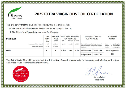 Wainui-o-mata Olives Frantoio - 2025 harvest - with free pourer!